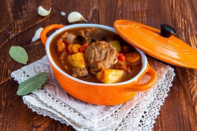 Ce spui de un gulas de vita? Picura uleiul in oala, seteaza functia “Rumenire”, iar dupa semnalul sonor adauga ceapa si caleste-o 5 minute. Dupa ce timpul s-a scurs, pune carnea alaturi de boia & chimen si lasa totul inca 5 minute. Opreste One Pot include legumele, usturoiul si o jumatate de pahar cu vin rosu. Apoi, activeaza functia “Pressure Cook” pentru 15 minute. La final, apasa butonul de pe capac si aburul este eliberat imediat.